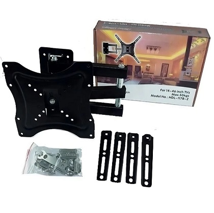 | DESCRIPCIÓN: soporte de muro para televisores lcd, plasmas y led de 14” a 55”, soporta hasta 60 kg con brazo articulado de doble movimiento