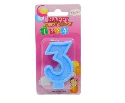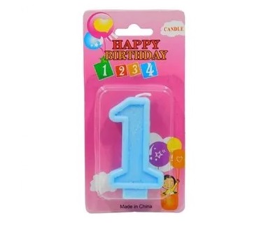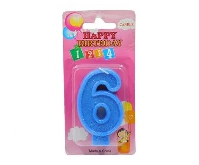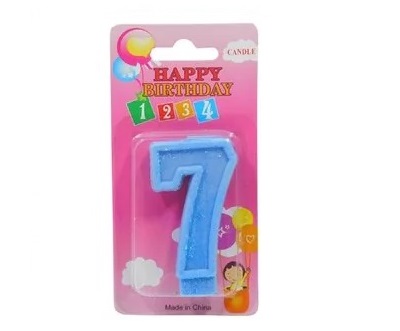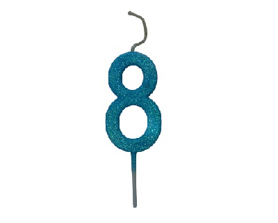 x 3.5 cm ancho Descripción: vela número color azul con glitter ideal para personalizar tortas, tartas, etc. sus medidas son 8 cm alto x 3.5 cm ancho. presentación: caja x 10 unidades del mismo número. |