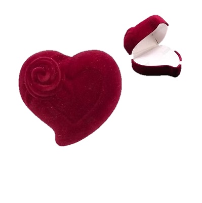 estuche corazon con rosa de gamuza rojo 6 x 6 x 3.5 cm